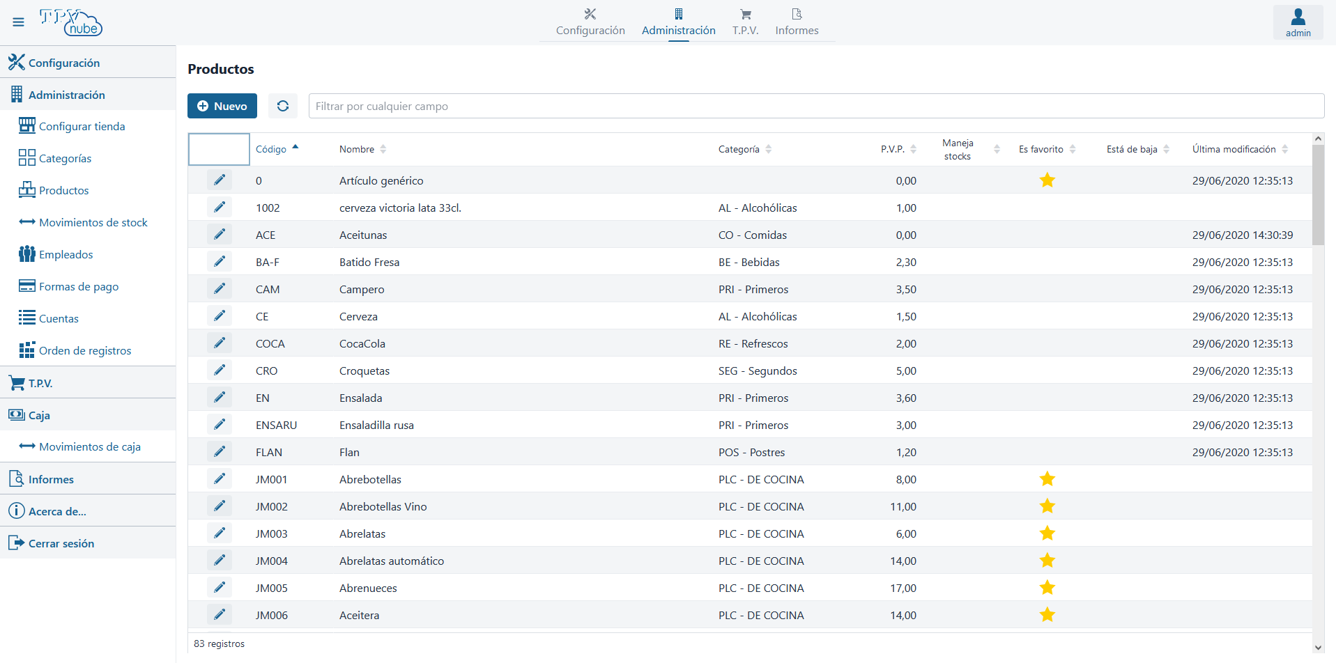 En el apartado de administración Vd. puede personalizar TPVnube a sus necesidades, y obtener los informes y estadísticas que le ayuden a gestionar mejor su negocio.