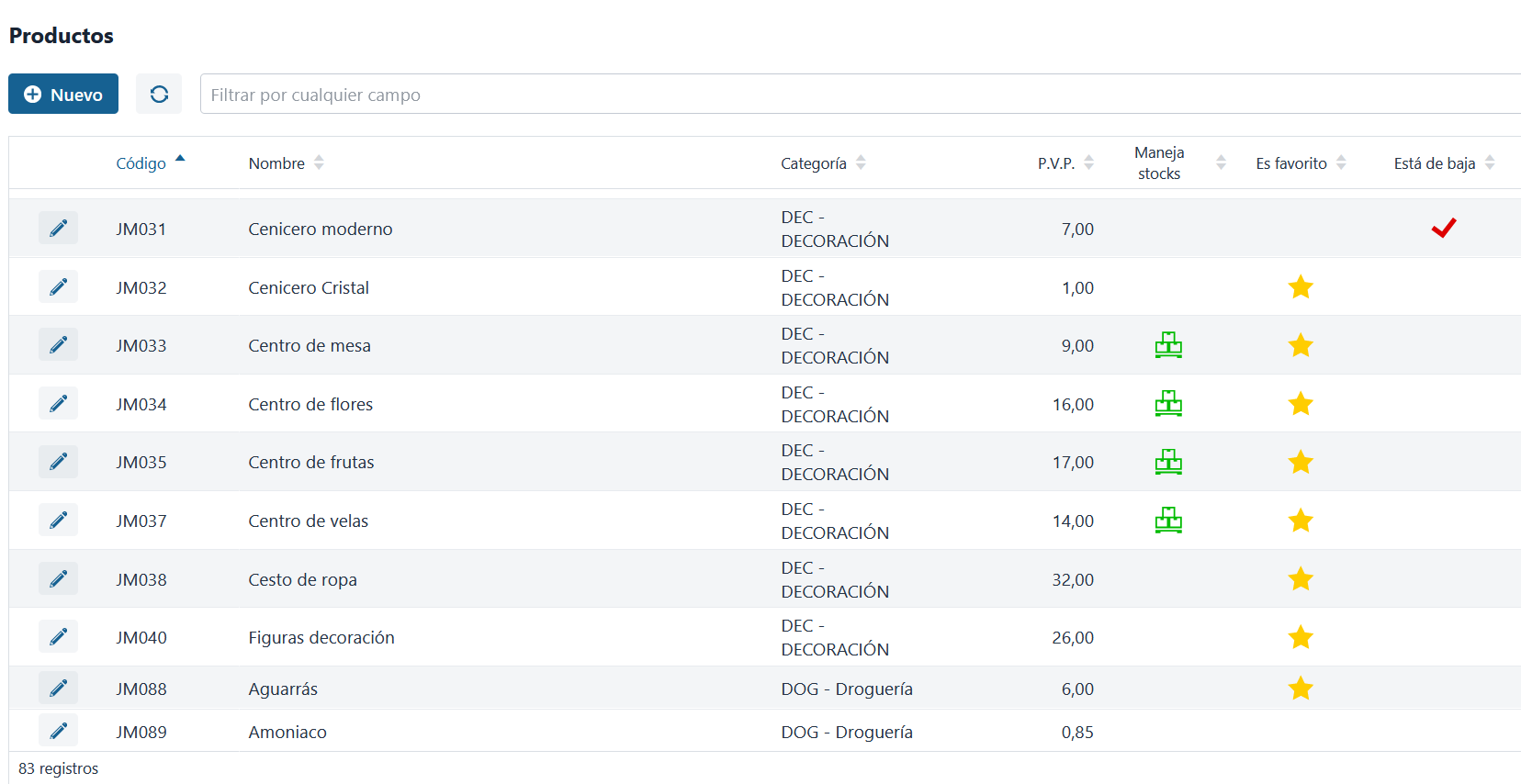 Podrá crear tantos productos como desee, y agruparlos en las categorías o departamentos que Vd. decida.