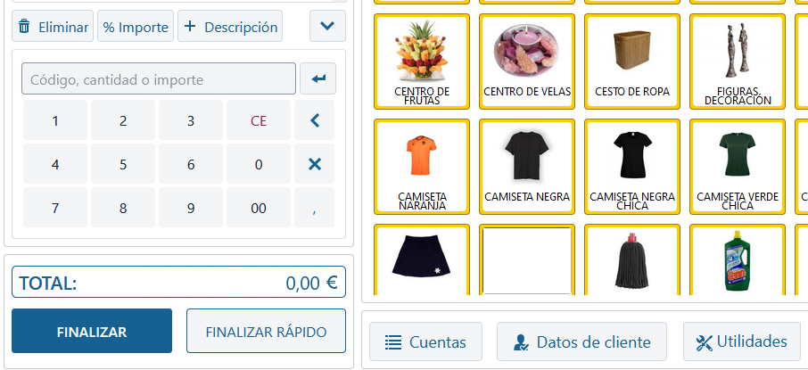 El apartado TPV le llevará directamente a la pantalla de ventas.